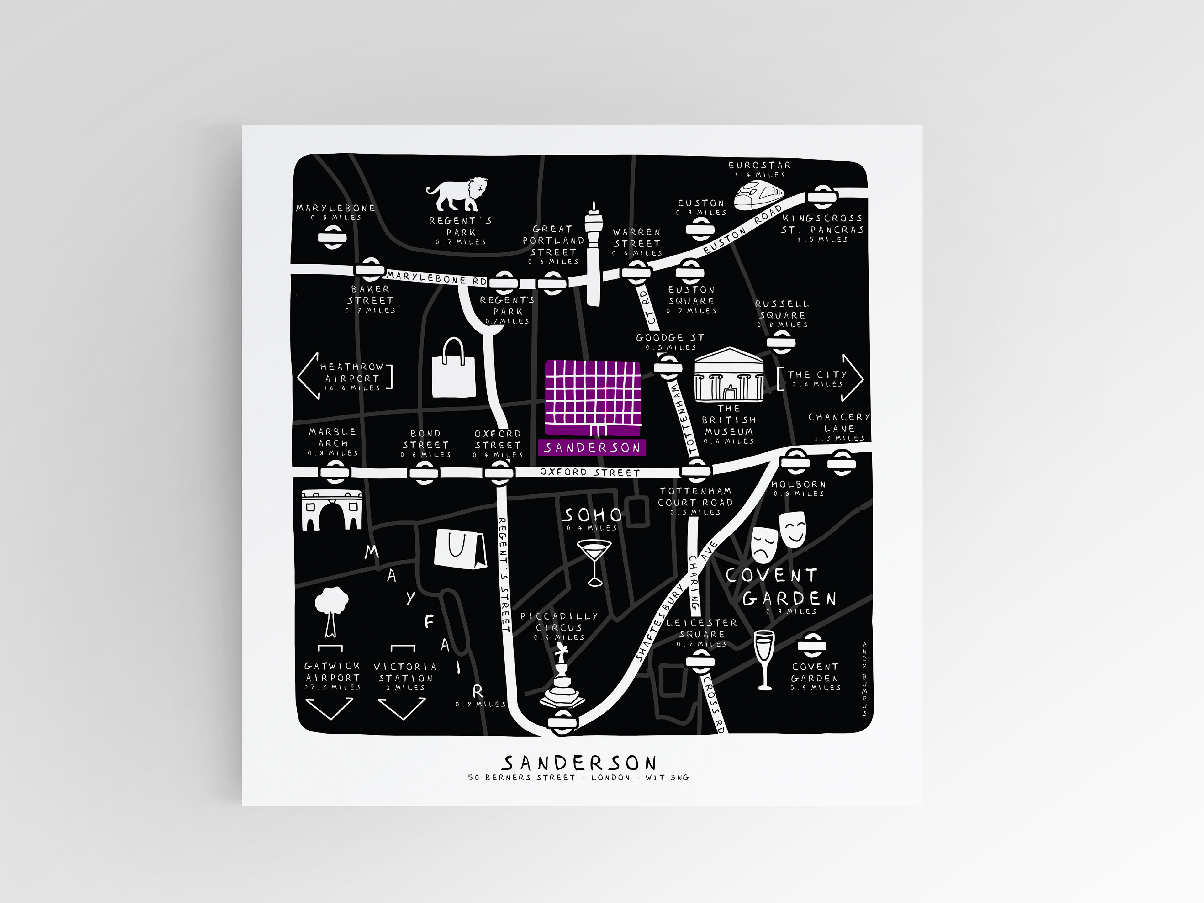 Map of London for the Sanderson Hotel